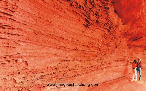 猴頭山、獨秀島、百丈崖、撐腰石、紅石魂、河馬戲水、齊云石窟等充分說明地質運動過程,紅色巨石分布特色鮮明、形神兼備;情人谷段終年流水淙淙、四季不息,流水和紅石山體以及河床相互依存,紅石外露的河床,流水經久沖刷后,形成座座龍潭和瀑布,潭水深不可及,綠如翡翠、靜若處子,代表景點大龍潭、天河瀑布、靜臥聽溪、試心橋等,把情人谷裝點成世外靜地,令人流連忘返。