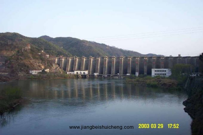 樞紐工程由攔河壩、溢洪道、輸水鋼管和發電廠四個部分組成。攔河列為鋼筋混凝土連拱壩,東岸端為重力壩,西岸端為平板壩,全長半5洼拱壩段長 413. 5米,有20個垛和21個拱組成。1983年大壩加高1.5米,并加做防浪墻高1.1米后,壩頂高程由原來128.46米增至129.96米;防浪墻頂高程由原來129.56米增至131.06米;最大壩高由原來74.4米,增至75.9米。溢洪道位于東岸山凹,開敞式,1984年由原來5孔擴建為6孔,堰頂凈寬63.6米,孔寬10.6米,最大泄量7540立方米/秒。版權所有,山東聊城聊之旅國際旅行有限公司轉載必究!泄洪鋼管3道,管徑l.975米,分別布設在13,14,15號垛內,最大泄量225立方米/秒。發電引水鋼管6道,供新老兩座電。廠輸水發電,合計發電流量98.25立方米/秒。