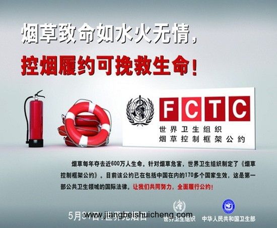 自20世紀(jì)50年代以來,全球范圍內(nèi)已有大量流行病學(xué)研究證實(shí),吸煙是導(dǎo)致肺癌的首要危險因素。為了引起國際社會對煙草危害人類健康的重視,世界衛(wèi)生組織1987年11月建議將每年的4月7日定為“世界無煙日(World No-Tobacco Day)”,并于1988年開始執(zhí)行。自1989年起,世界無煙日改為每年的5月31日。2013年5月31日是第26個世界無煙日,主題是“全面禁止煙草廣告、促銷和贊助。”