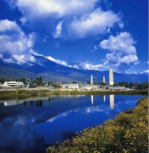 崇圣寺三塔和三塔倒影公園互為添輝,相與增色,從而成為最能代表大理形象的重要人文景觀。倒影公園最有特點的是池水碧綠如玉、清澈見底、浪不驚、平如鏡,三塔倒影清晰,令人嘆為觀止。角度不同,倒影形態亦隨之各異,是攝三塔最佳場所。在冬季,整座蒼山銀妝素裹,三塔倒影更加美麗迷人。正如清代楊炳锃《三塔倒影》所贊“佛都勝概肇中堂,三塔嶙嶙自放光。蒼麓湖蟠倒影,此中幻相說空王。