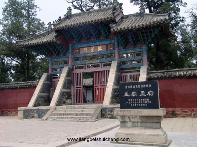 孟府是孟子嫡系后裔居住的府第。建于元至順二年(1331年),元仁宗皇帝封孟子為“鄒國亞圣公”,從此,這里就被稱為“亞圣府”。孟府是一座典型的中國貴族府第,占地面積約2.24萬平方米。以主體建筑大堂為界,前為官衙,后為內宅。整體布局大方氣派,典雅中透著幾分威嚴。孟府內現在還保存著封建帝王所賜的朝服、龍袍、圣旨、誥封、家族檔案、印書木刻和書籍字畫等大量珍貴文物,為研究中國封建社會的歷史,提供了寶貴的資料。