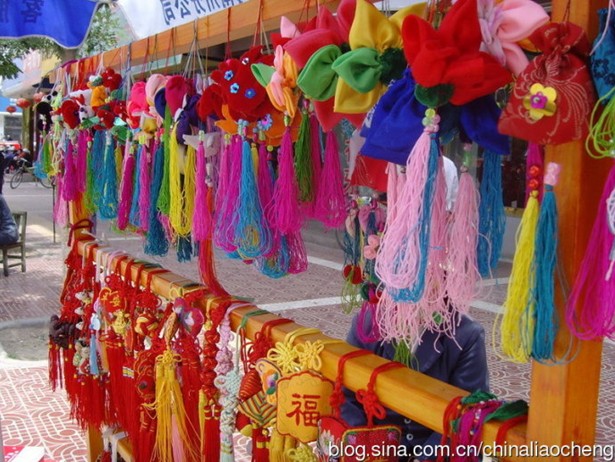 端午節(jié)佩香囊,不但有避邪驅(qū)瘟之意,而且有襟頭點綴之風。香囊內(nèi)有朱砂、雄黃、香藥,外包以絲布,清香四溢,再以五色絲線弦扣成索,作各種不同形狀,結(jié)成一串,形形色色,玲瓏奪目。