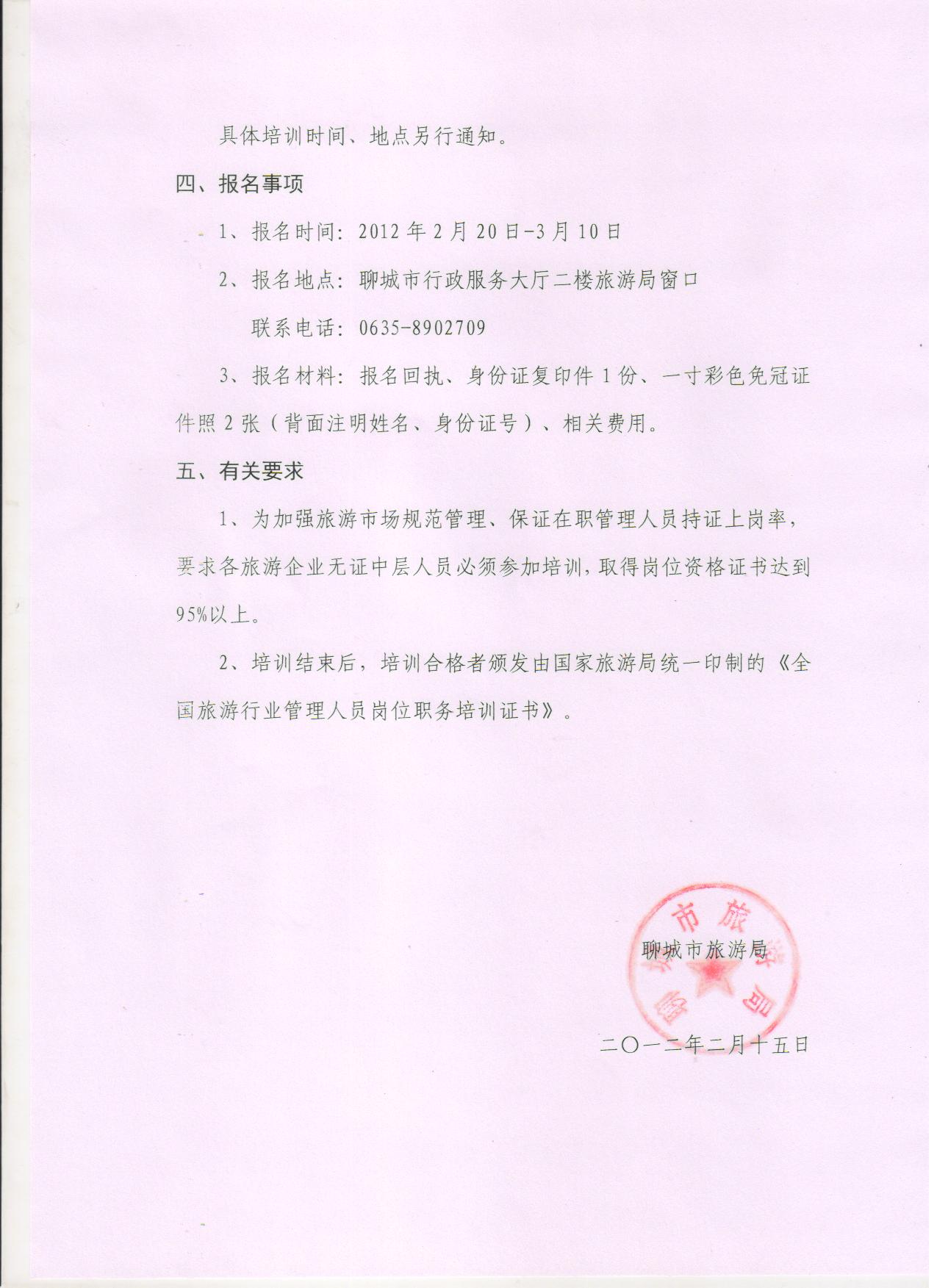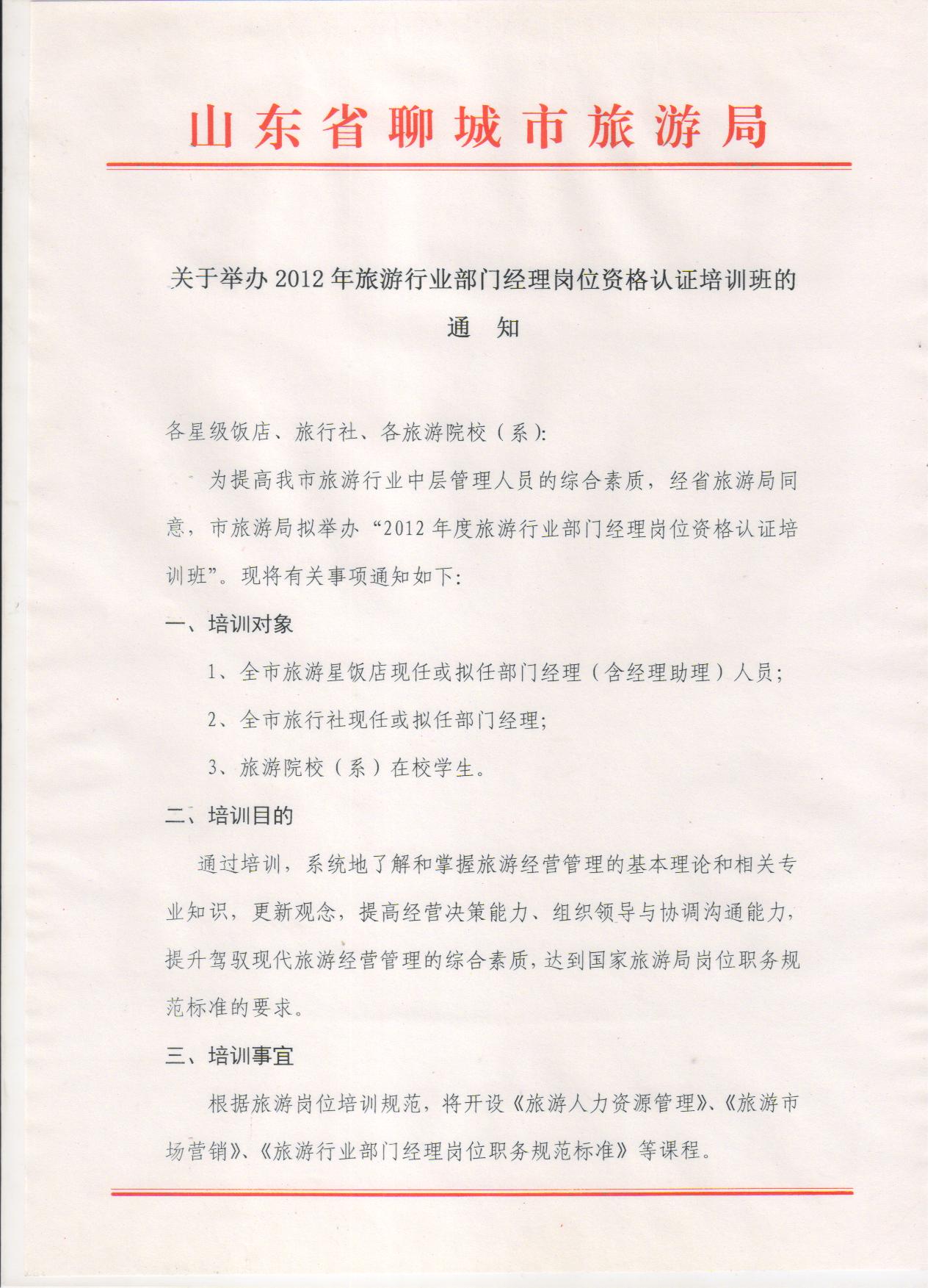2012年旅游行業(yè)部門經(jīng)理崗位資格認(rèn)證培訓(xùn)通知