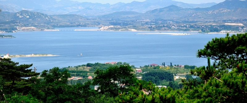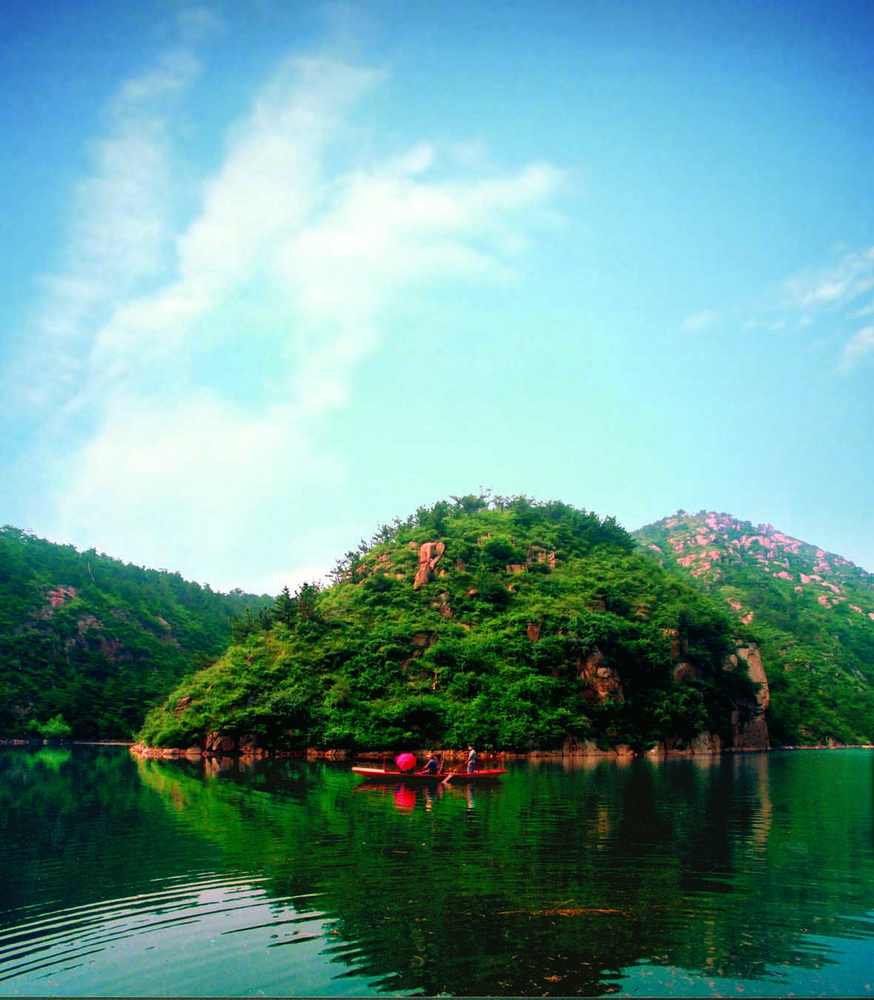“高峽出平湖”,天綠湖有山東第一高湖之稱。天上人間、水天一色,蔚為壯觀、妙不可言,兩邊青山峻嶺,一座連一座,臨湖的一面就如刀削般,更為險峻。