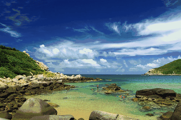長達6公里的碧海銀灘,為植被茂密的低緩山坡所環抱,被世界旅游組織專家贊譽為海南現存未開發的最美麗海灣。