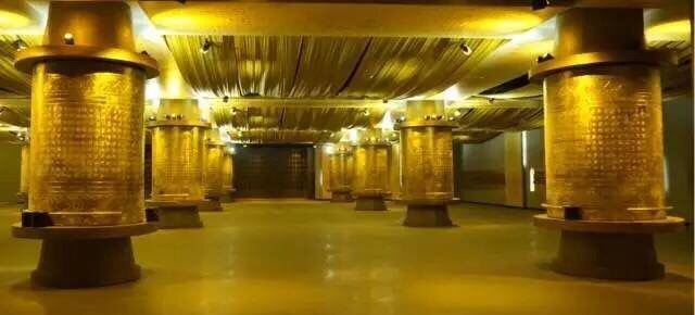 第五層為般若殿,供奉黃財(cái)神一尊,韋陀菩薩4尊,八大菩薩4800尊。此層有轉(zhuǎn)經(jīng)輪,屬佛教法器,內(nèi)裝藏經(jīng)文或咒語(yǔ),順時(shí)針轉(zhuǎn)動(dòng)整圈即等同念誦經(jīng)文或咒語(yǔ),可以清凈惡業(yè)、積聚功德。