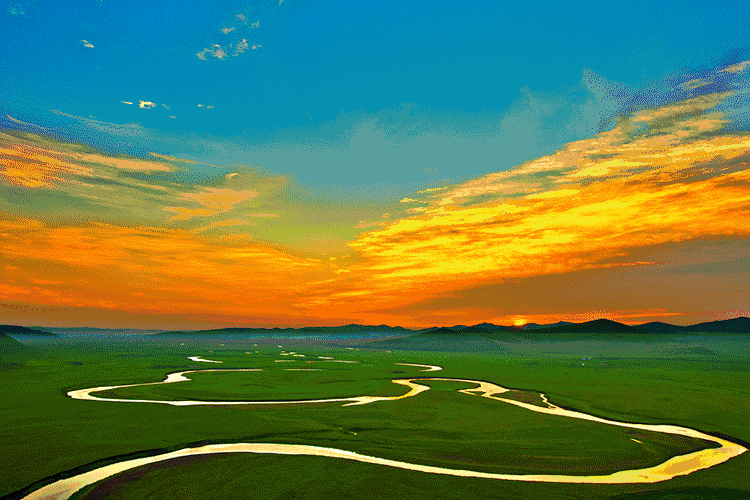 5.離開喧鬧的城市,迎著初升的太陽(yáng),踏著清晨的露水,走進(jìn)一碧千傾的草原,去找尋“天蒼蒼、野茫茫、風(fēng)吹草低見牛羊”的壯美景象。