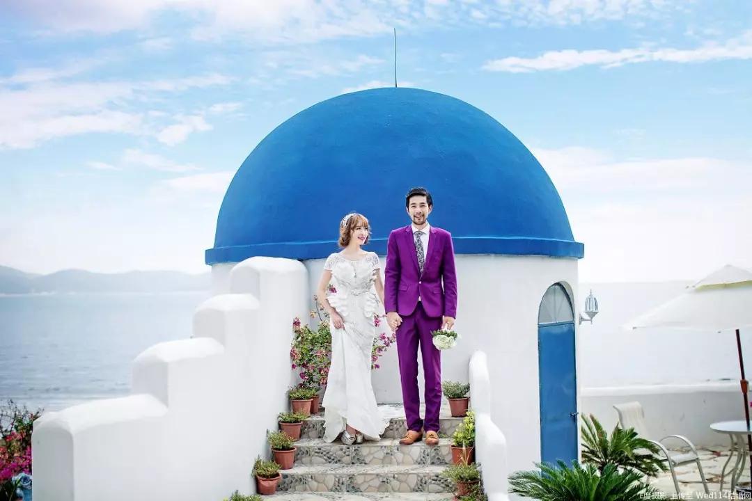 潔白的墻壁,蔚藍的屋頂,宛若在希臘的圣托里尼島上,海邊的水晶教堂,將天空、大海和山石收入其中。