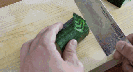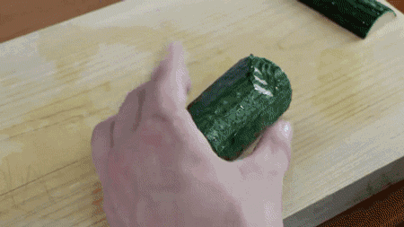 1.黃瓜取段,從黃瓜兩側(cè)分別小心切入