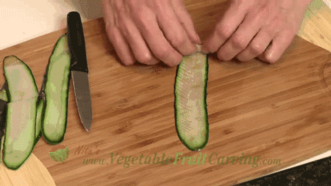 3.之后將黃瓜片稍微向上推移,如此往復(fù)。