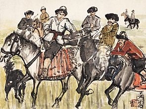 叼羊就要開始,騎士們三三兩兩的給坐騎熱身。