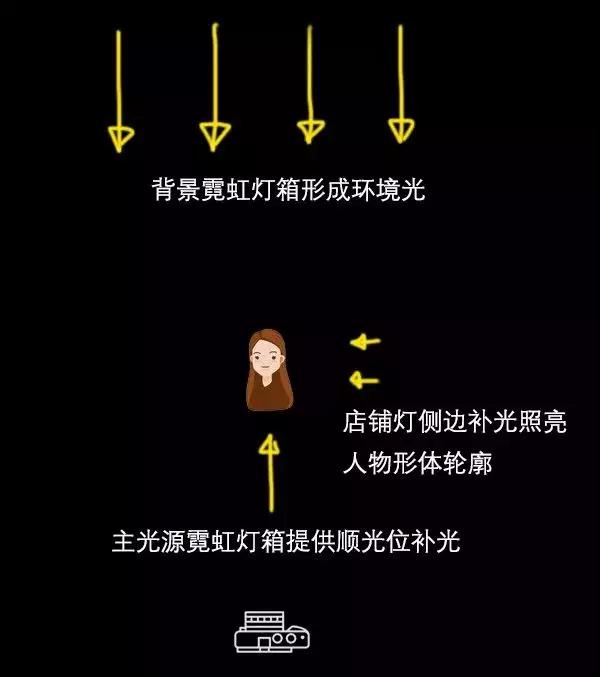 這里的背景和環(huán)境光主要是來(lái)自霓虹燈箱,和主光源有天然而且很好的一致性,整體影調(diào)就會(huì)很自然。