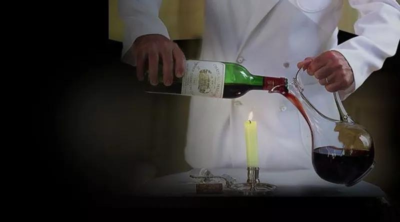 在傳統(tǒng)的侍酒服務中,開瓶時需要在酒瓶下方點燃一根蠟燭,選擇合適透亮的角度,在燭光前緩緩將酒液倒入醒酒器中,直到看見沉淀流動到瓶頸處停止。