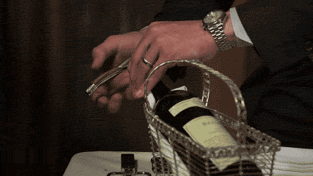 而老酒的醒酒則更是一項侍酒藝術,十分考驗侍酒師功底。首先,需要提前24小時將老酒取出,直立或放入醒酒籃中,讓沉淀聚集在瓶底。