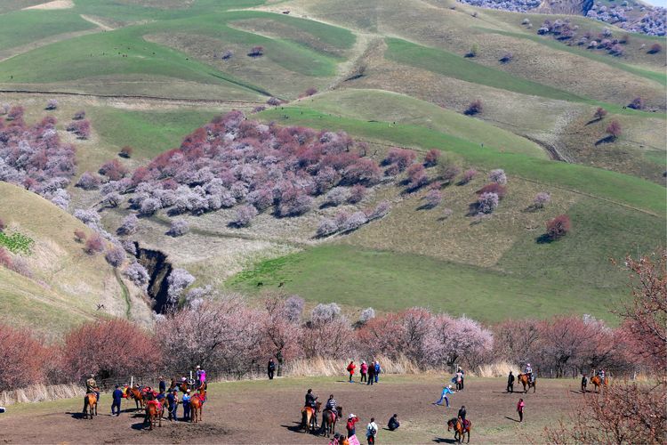 吐爾根杏花溝位于新疆伊犁新源縣吐爾根鄉。吐爾根杏花溝是一片中世紀遺留最大的原始野杏林,集中分布于鞏乃斯河北岸,占地有3萬多畝,是新疆野杏林比較集中的地區之一。