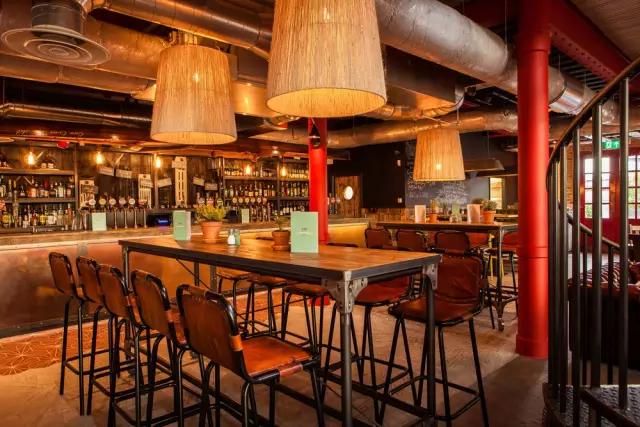 由英國著名設計事務所Design research studio設計的Craft吧最明顯的符號是英國Tom Dixon的家具,富有個性的吧凳與金屬的吧臺飾面就是最佳搭配,天花的藝術噴繪為空間融入濃厚的時代氣息。