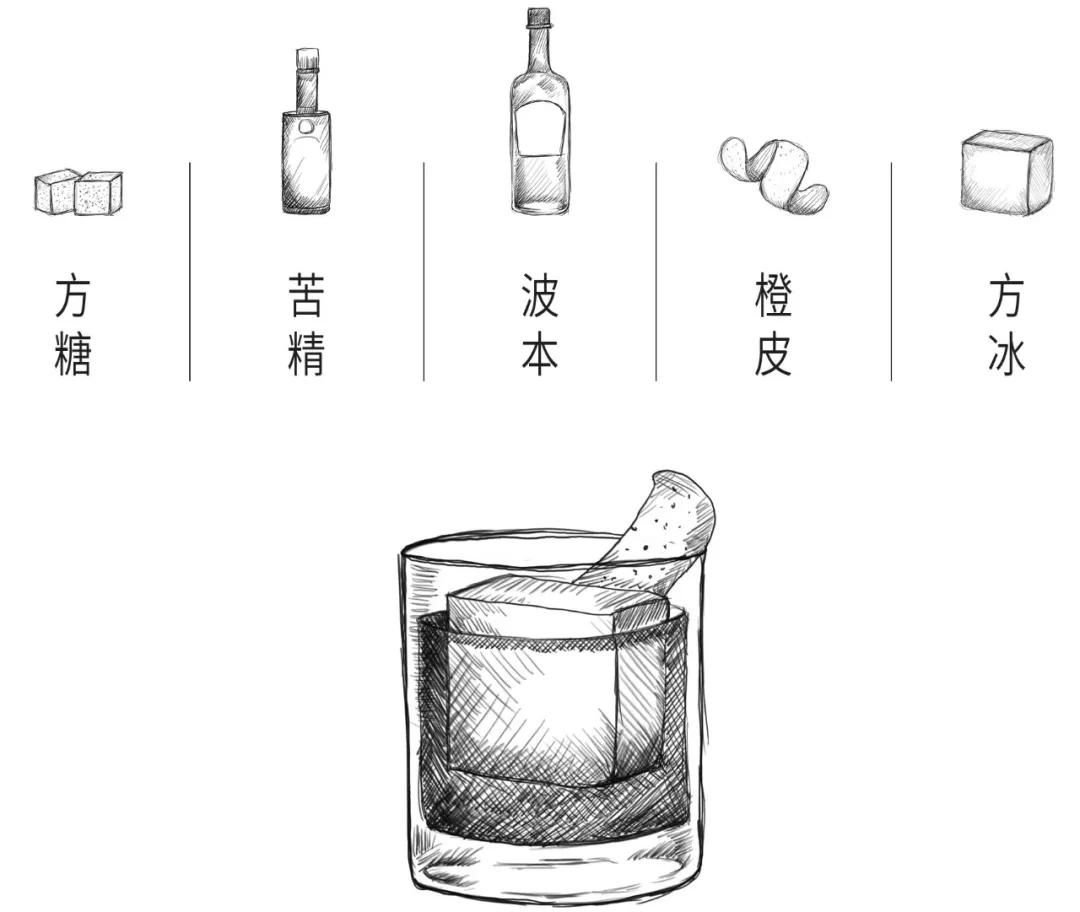 19世紀70年代,新的利口酒興起,調酒師們開始在其中加入苦艾酒、橙皮酒、黑櫻桃利口酒和其他奇奇怪怪的東西,試圖制作改進的威士忌“雞尾酒”,但是很多堅持原則的酒客們更懷念它傳統老式的做法,即:威士忌、苦精、水、糖的簡單組合。于是,80年代,老式雞尾酒中的“老式”就這樣出現了。