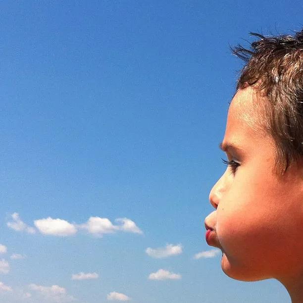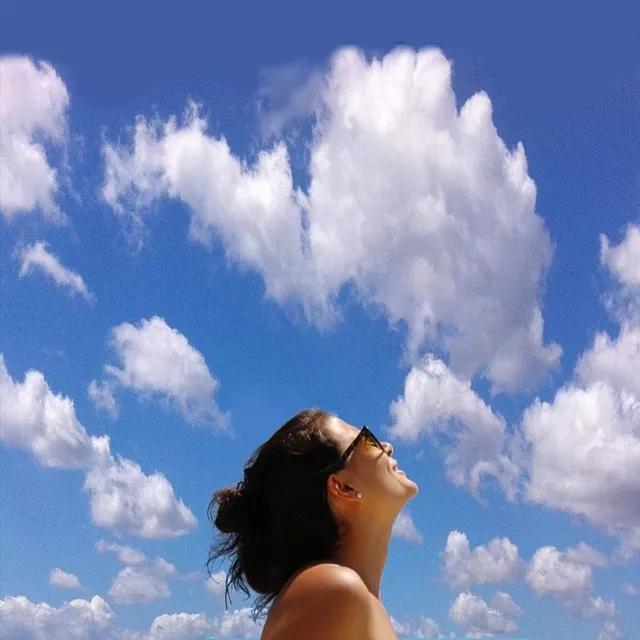 人物主體抬頭仰望蔚藍的天空,采用近景拍攝的方式,將被拍攝對象沐浴在陽光下的愉悅情緒記錄下來。