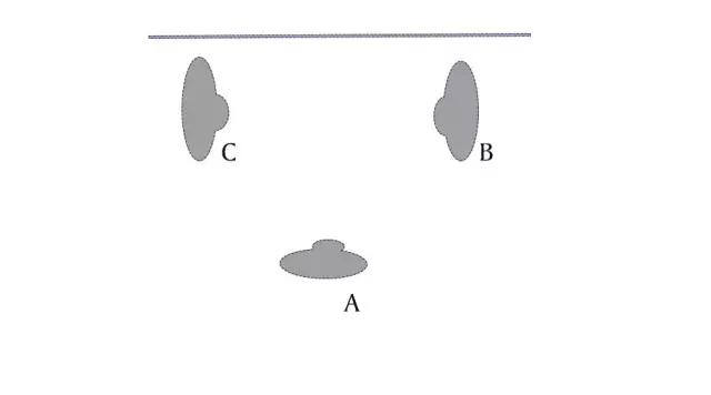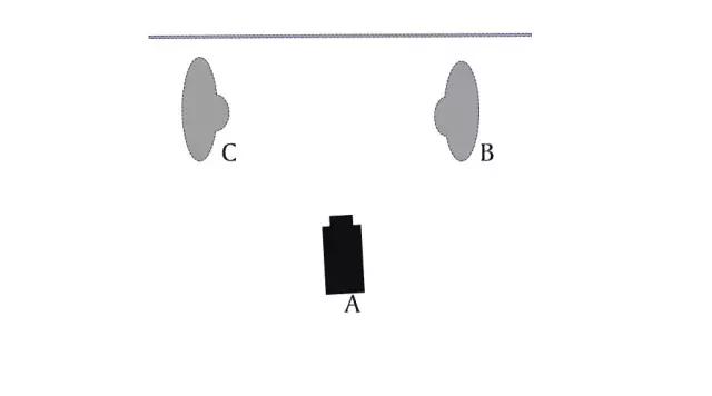 A、B、C站在軸線同一側,從A的角度看B、C,此時B在右側,C在左側;