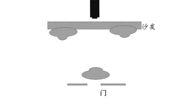 其次,我們不知道門在房間的那個位置,也不知道他走進的是前兩人所在的房間。由于前兩人的鏡頭里沒有拍到過房門,觀眾會以為影片切換進了一個全新的場景,其中有個人走進了房門。而我們真正應該做的是將攝影基座設在房間后方的沙發后面,這樣沙發上的兩人就在前景中,也能拍到第三個人走進房間。但這樣做就打破分割線了,那么我們還應不應該這樣做?