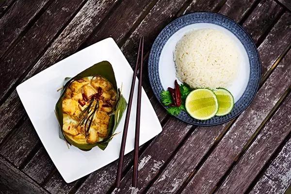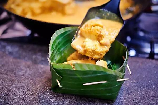 這道菜原本是古高棉人用來(lái)慶祝水節(jié)的美食,將肉類(lèi)(魚(yú)、雞、豬、牛肉)裹在香蕉葉中烘烤,再加入椰汁、椰漿、高棉咖喱醬、檸檬葉和當(dāng)?shù)厥卟耍献酪院蟛粌H顏值高,椰香魚(yú)香葉香渾然一體,口感綿密有點(diǎn)像咖喱。