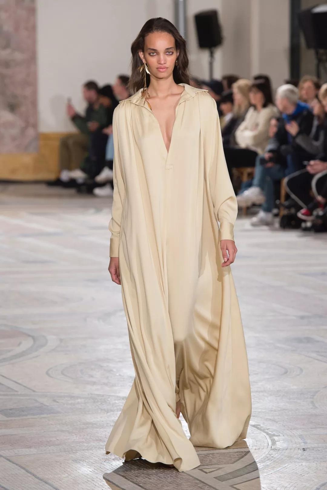 還是回到伸展臺上,頗具冷淡高級的品牌以簡潔高級的真絲印花巾與經典款羊毛針織衫做拼接,將度假風情融于基礎款式和高級材質中;而那些垂墜感十足的真絲襯衫,和挺括又輕軟的亞麻半裙,則營造出強勢中不乏輕松的造型彰顯effortless時髦。