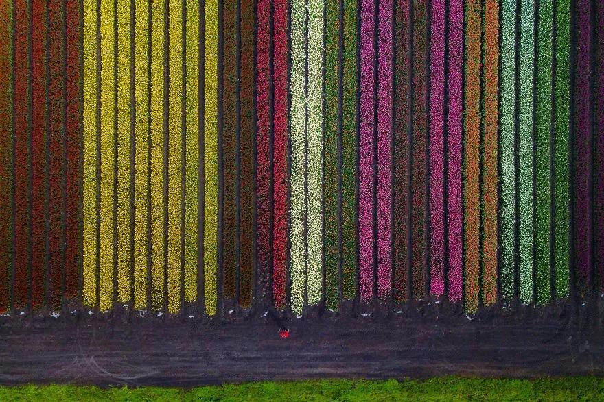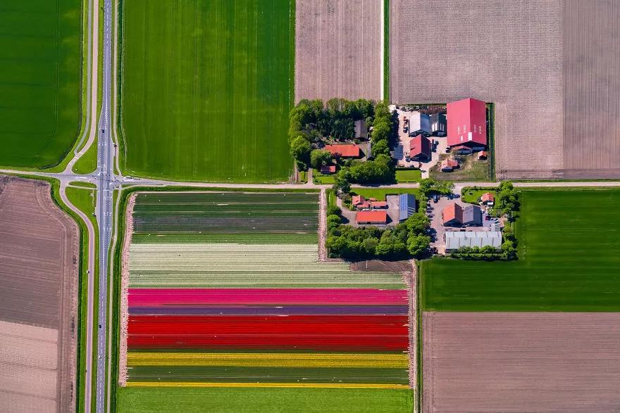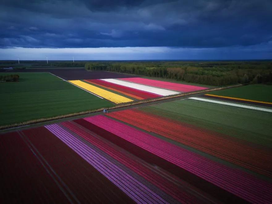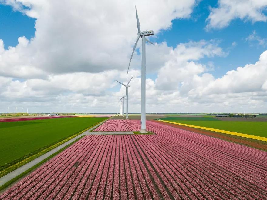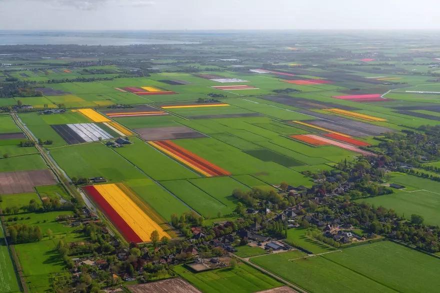 這里不僅風景優美,還擁有3500公頃荷蘭最大的球根花田。一望無際的郁金香花田和高高矗立的風力發電機組成了一幅綿延100公里的美麗畫卷。