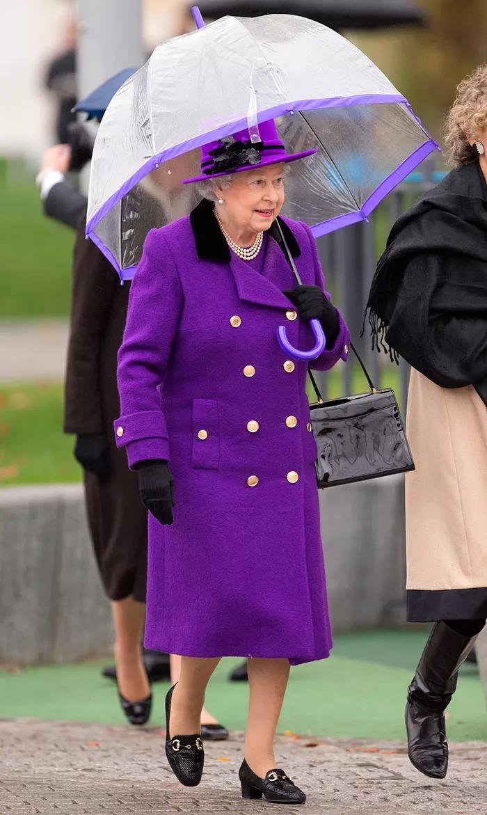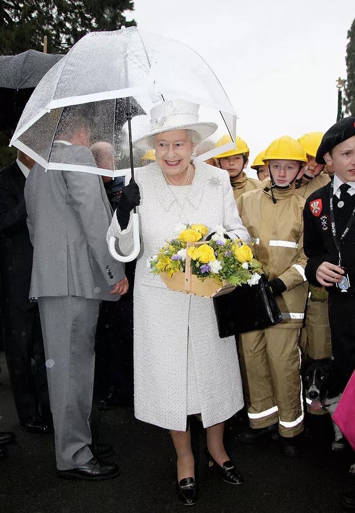 有沒有發現女王用的傘和衣服很相配