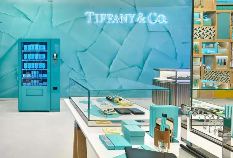 與此同時,店內(nèi)還有一臺自動售賣機,專門售賣Tiffany最新香水、現(xiàn)場雕刻的珠寶和皮革壓花產(chǎn)品,顧客可在屏幕上設(shè)計元素,最后融入到吊墜和其它產(chǎn)品上。