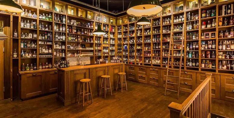 藏在地窖里的一個speakeasy風格的酒吧,它的磚墻上籠罩著酒瓶和舊學校燈泡。這是由警察局改造的雞尾酒吧,看上去像是一個更高檔品種的藏酒閣。