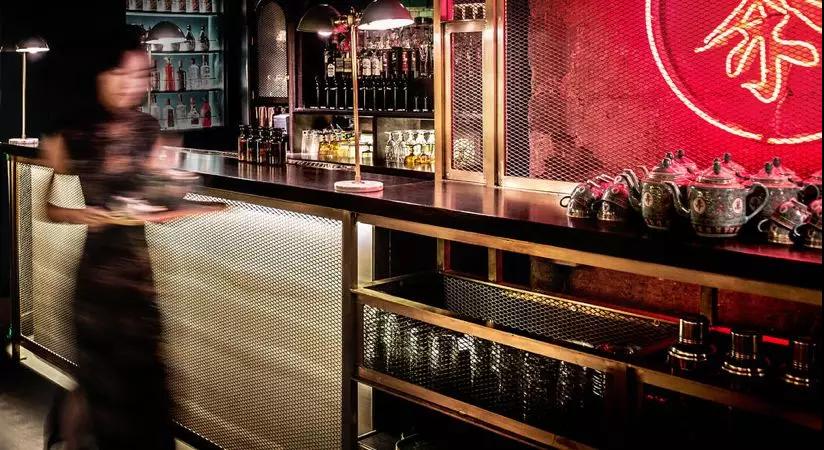 被廣東話的綠色霓虹燈點燃,從豪華的紅色窗簾反射出來,創(chuàng)造出一個飽和的Nicolas Winding Refn電影房間,在華麗的設(shè)計之中,茶室之旅中有很多新奇之處。菜單印在報紙上。有來自臺北,新加坡和香港的老式乙烯基唱片的自動點唱機出現(xiàn)60年代的曲調(diào)。這里有著中國飲料,被稱為“中國伏特加”,還能找到與花生和枸杞的新奇搭配。