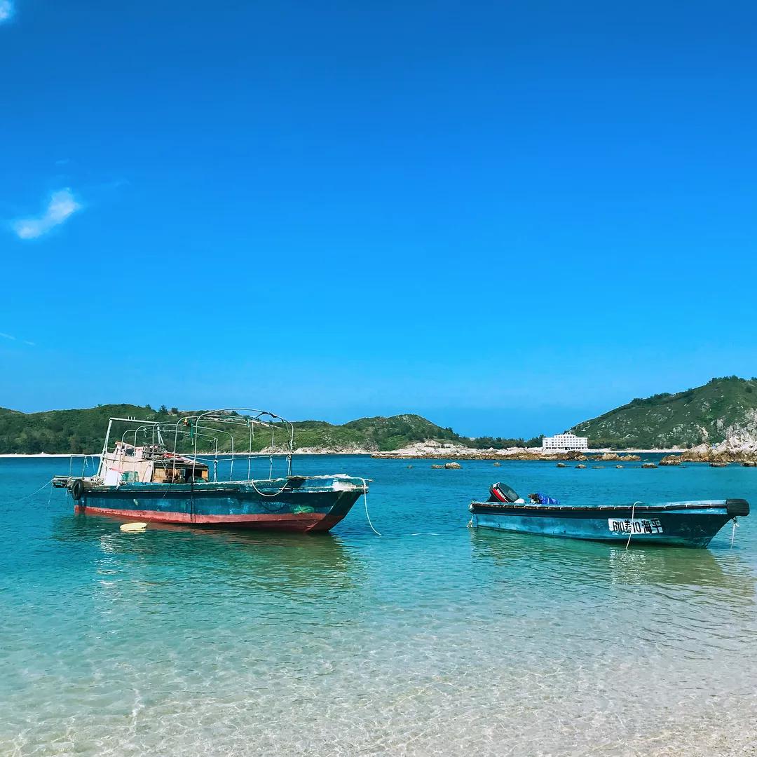 較場尾的沙灘真的非常長,透過樓與樓之間的小巷口,就可以看見大海,海水清澈透亮,陽光灑在海面上,波光粼粼。