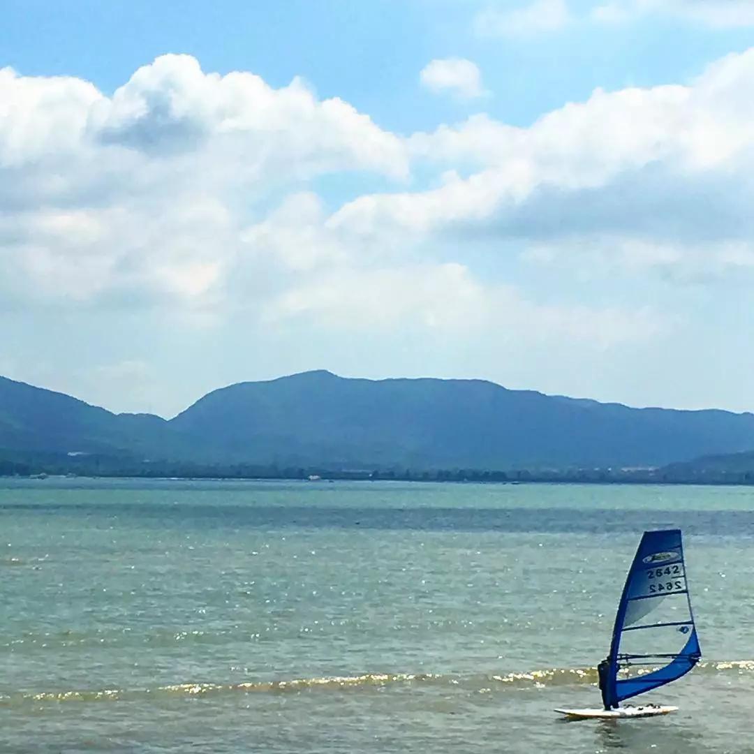 較場尾是內(nèi)海,浪比較小,每年的9月份開始起風,很適合玩風箏沖浪之類的項目。還有現(xiàn)在很流行的空中飛人,在較場尾也有得玩,還配有專業(yè)教練一對一教學。