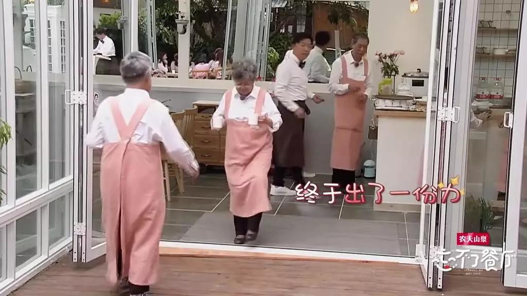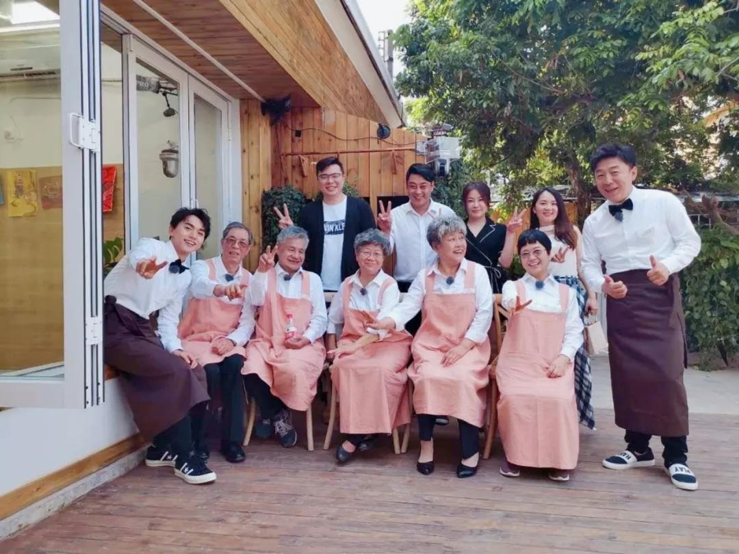餐廳里有5個服務員,年齡最小的65歲,最大的已經81歲了...