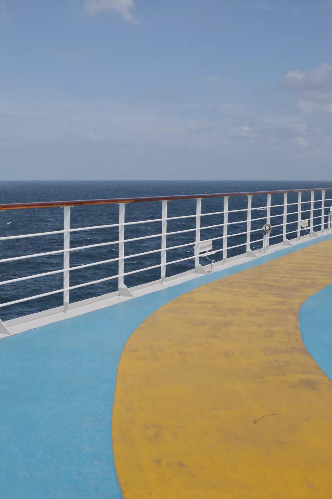 在郵輪上的第五日,旅程已經接近尾聲,早上醒來的時候,從舷窗望出去,海上的天空是將欲破曉的深藍,心里突然涌起上甲板看日出的念頭。