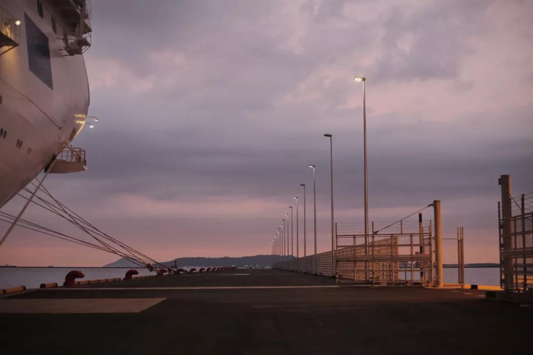在太平洋上漂浮了兩日,我們抵達福岡博多港。集裝箱齊齊停靠在碼頭上,大小船只在水面平靜游弋,靠港貨輪發出低沉長鳴,清晨的港口已經奏響忙碌的樂章。