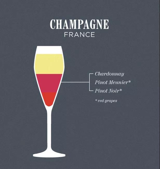 別看香檳看起來是“白葡萄酒”,但大部分香檳混釀時(shí)紅葡萄占比更大。