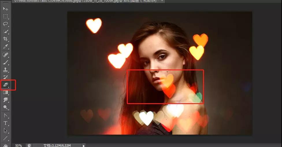 如果出現光斑遮擋到了人像的面部時,可以選中光斑圖片,使用橡皮擦進行擦除。