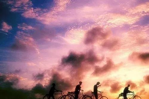 而這張剪影圖片,整個布局就很簡潔,一眼就知道這是在描述孩子們放學騎車回家的場景。