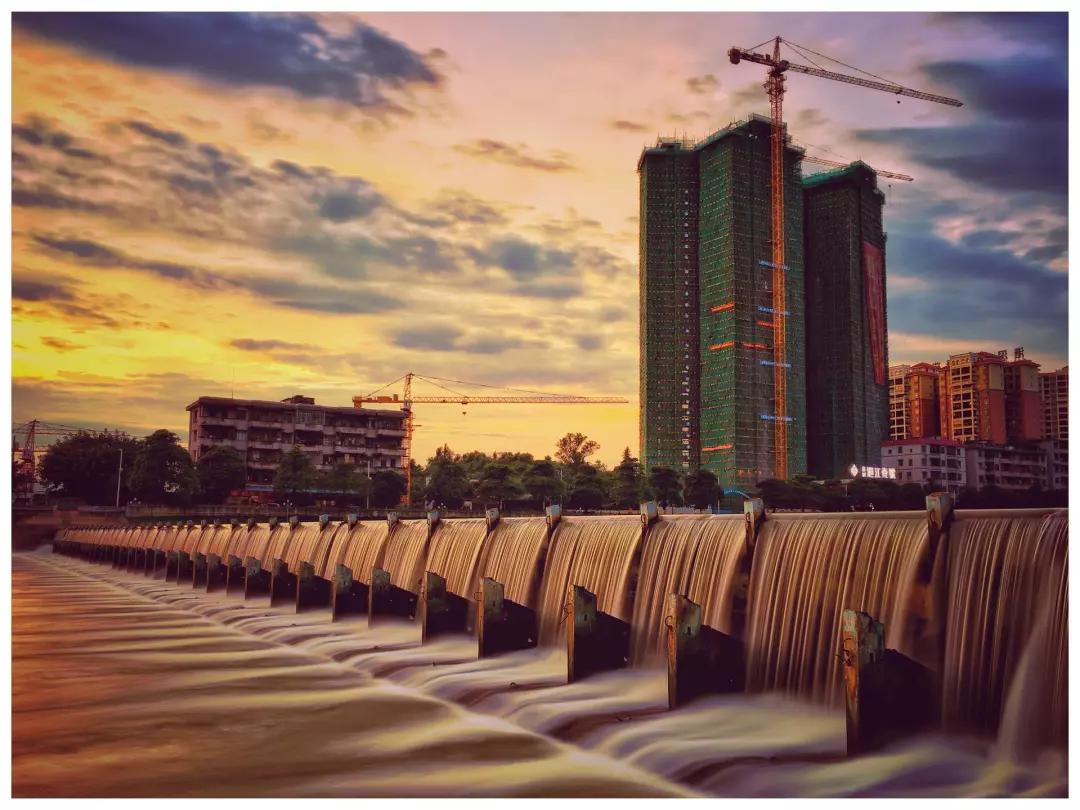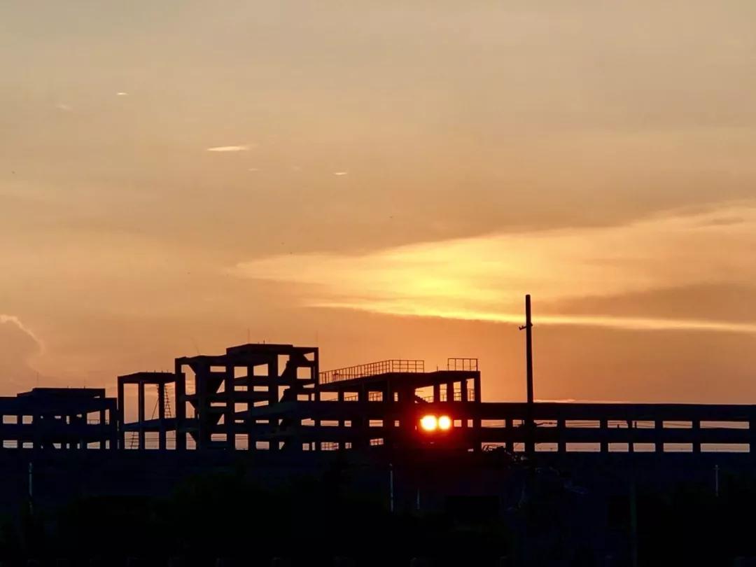 最后是建筑場地。進(jìn)行逆光拍攝,正好將夕陽安排在還未建成的建筑物鏤空里,別有一番韻味。