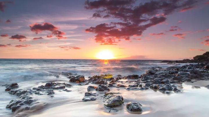 單純的拍風(fēng)光。夏季去海邊游玩的機(jī)會可能會更多,一望無際的大海,加上岸邊的石頭組合起來,會成為一張很不錯(cuò)的夕陽圖片。
