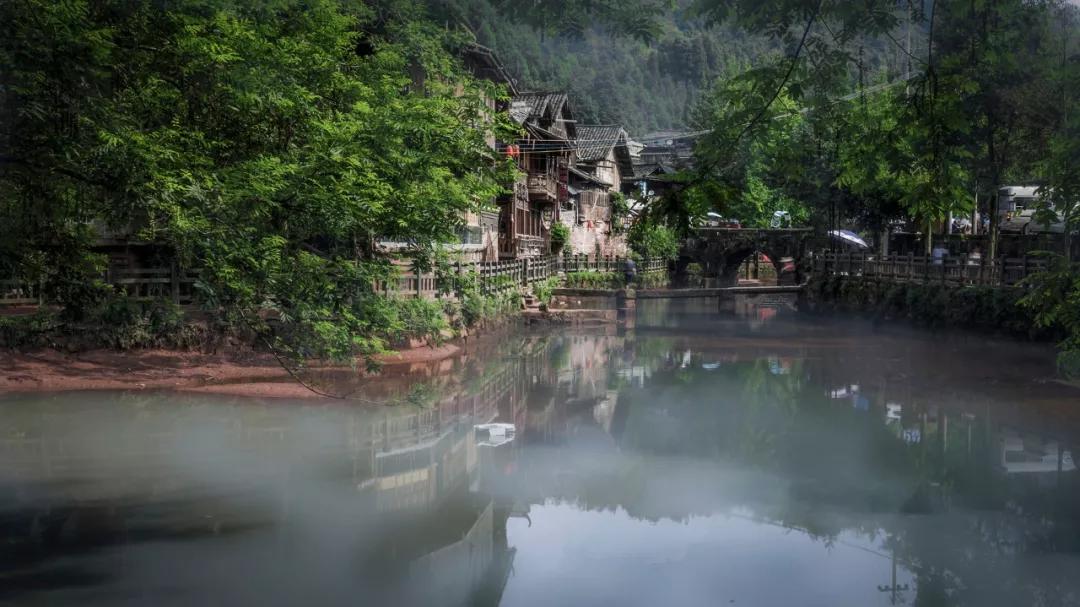 古鎮依山傍水,有著濃濃的田園風光,至今還保留著許多明清時期的吊腳樓式建筑,街道主要是呈“井”字形布局,寓意“井中有水,水火不容”,以水制火,祈福古鎮平安。