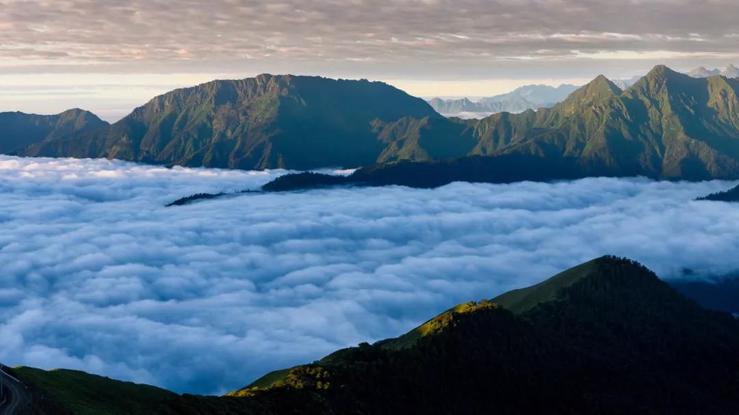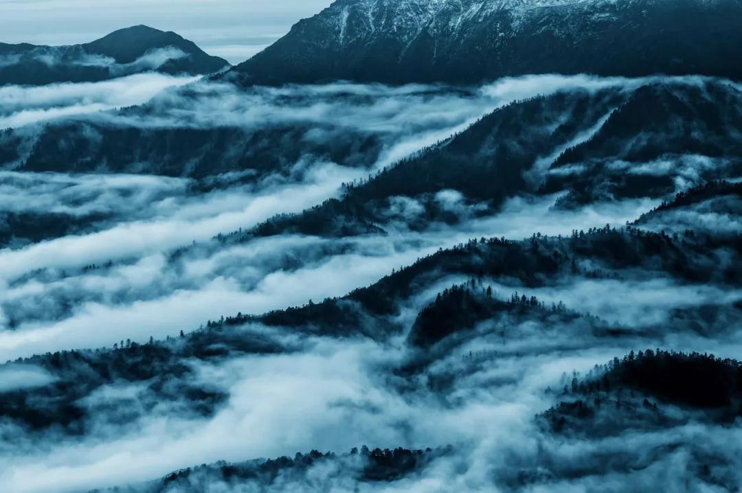 浩浩蕩蕩,遮蔽千里,一層卷著一層,放眼望去,唯有山尖雪峰清秀,似仙宮圣境,如極樂婆娑,只是呼吸一口新鮮的空氣,都會覺得生活靜好。