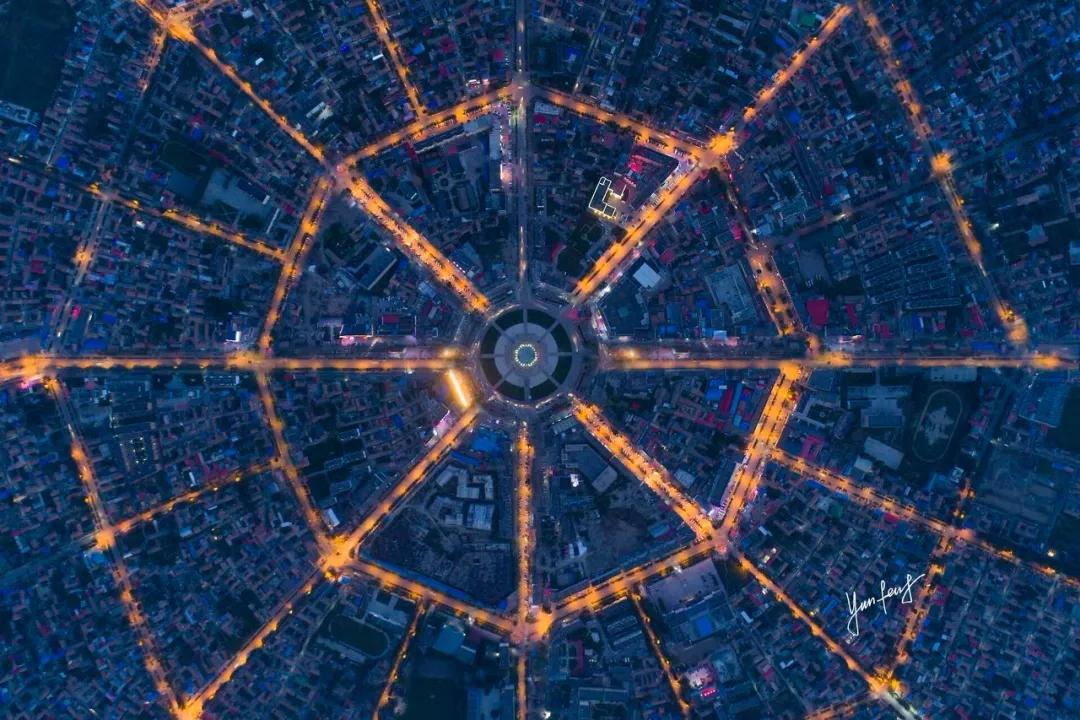 八卦城是按照《易經》來建造的,以城區中心廣場為“陰陽”兩儀的太極圖向外延伸,按照八卦方位向外輻射出8條主街,每條街長1.6公里,每隔360米設一條環道連通。