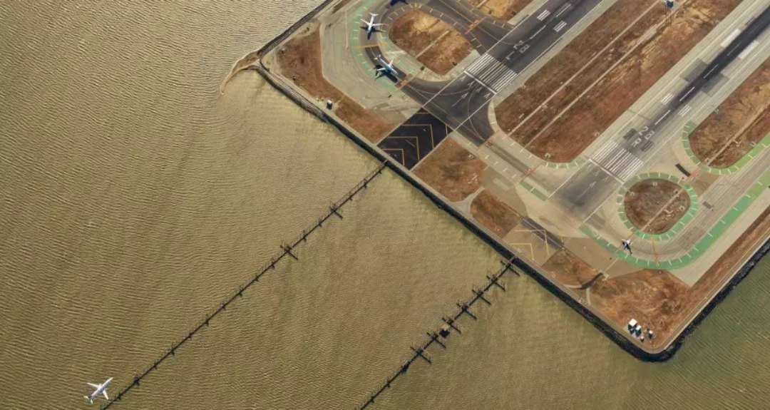 舊金山國(guó)際機(jī)場(chǎng)(SFO)有四條跑道。這是我拍攝的編號(hào)28號(hào)的跑道降落端處的罕見(jiàn)景觀。我一直夢(mèng)想著從空中記錄這個(gè)繁忙機(jī)場(chǎng)的動(dòng)感時(shí)刻。經(jīng)過(guò)申請(qǐng),我終于獲準(zhǔn)從機(jī)場(chǎng)上空直接駕駛飛機(jī)經(jīng)過(guò)。這是一個(gè)大風(fēng)天,機(jī)場(chǎng)的風(fēng)速在每小時(shí)35-45英里。強(qiáng)烈的飛行顛簸,讓一邊控制飛機(jī),一邊忙著拍攝的我簡(jiǎn)直手忙腳亂。這次飛行拍攝很有挑戰(zhàn)性,但它也是如此的令人激動(dòng),完成這個(gè)拍攝計(jì)劃讓我?guī)滋於妓恢?/span>