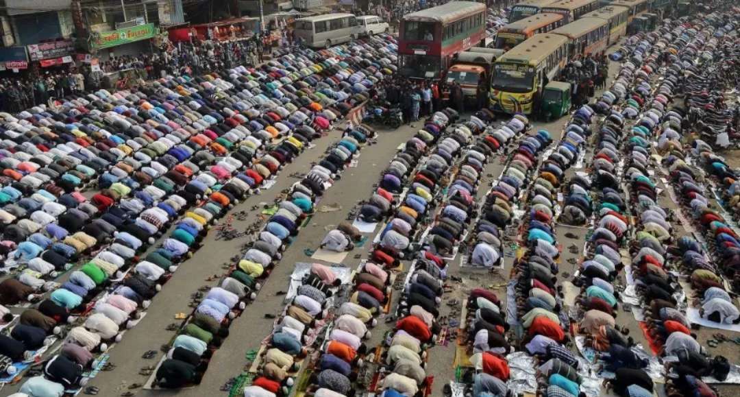 在伊教“全球盛會(huì)”期間,人們?cè)诿霞永瓏?guó)的達(dá)卡街道上祈禱。“全球盛會(huì)”(Bishwa Ijtema) 是每年在達(dá)卡舉行的主要宗教聚會(huì)之一,聚集了數(shù)百萬(wàn)信徒參加。專(zhuān)用的祈禱場(chǎng)地已經(jīng)不足以容納這么多人,所以很多人來(lái)到達(dá)卡的主要街道祈禱。在此期間,所有地面交通和行人都將暫停等待儀式結(jié)束。