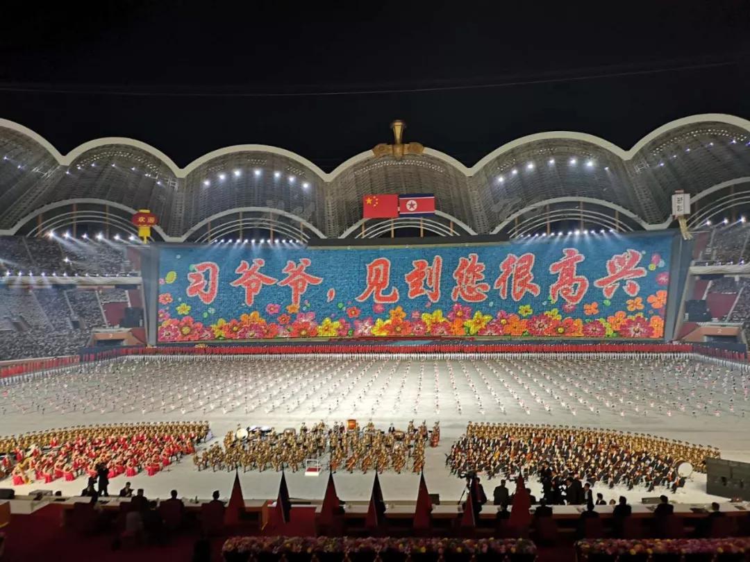 這臺演出為習近平此訪專門精心創作,數萬名朝鮮演員參加表演,朝鮮三大樂團首次同臺獻藝,整場演出氣勢恢宏、震撼感人。