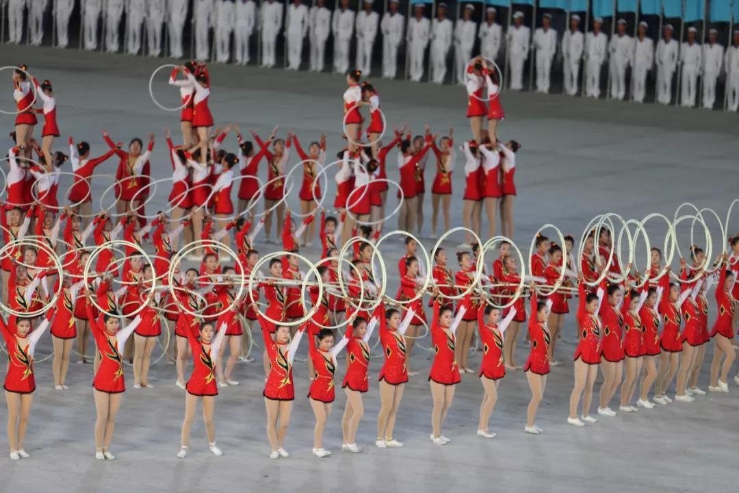 ▲2018年9月9日,演員在平壤綾羅島“五一”體育場表演“輝煌的祖國”。