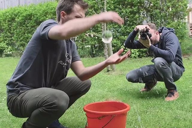 比如說,你可以讓一個朋友放入水中,然后將水晶球帶著水花拋出,重復這一過程;你在一旁用高速快門抓拍在空中的球體: