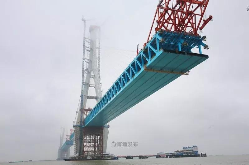 ·27日,滬通長江大橋南主塔順利封頂。至此,該橋兩座高達(dá)330米的主塔全部建成,標(biāo)志著世界最大跨度公鐵兩用斜拉橋建設(shè)取得了關(guān)鍵性進(jìn)展。